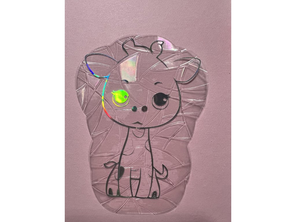 Vzor motivů je z holografického materiálu a tudíž i on samotný vytváří duhový efekt.
