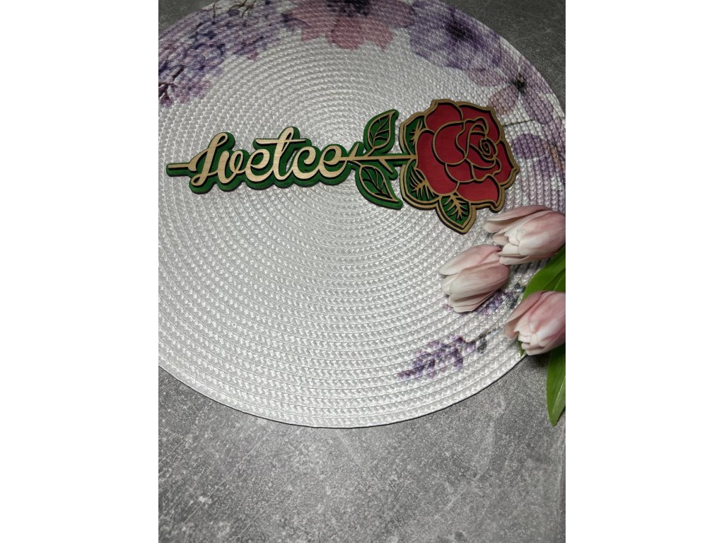 Krásná 25 cm vysoká vyřezávaná růže, která je ručně barvená akrylovými barvami a nakonec ošetřena akrylovým lakem.