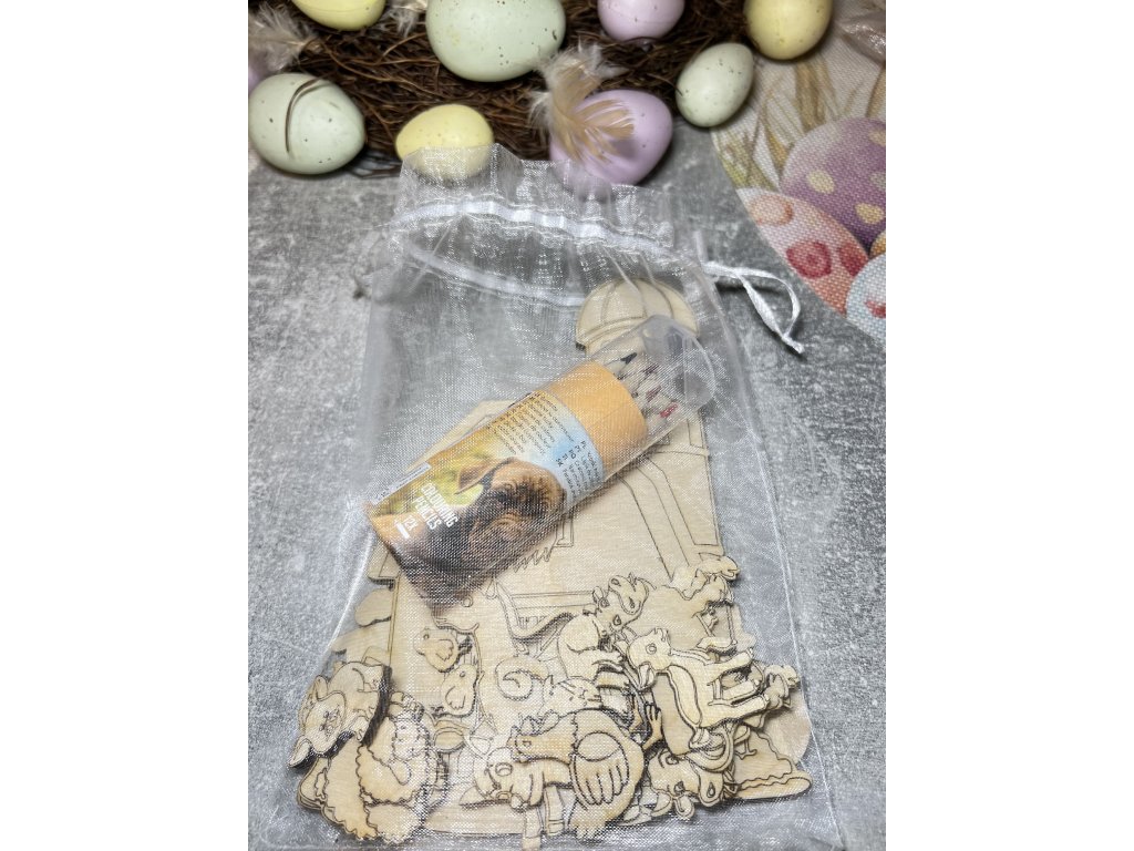 Včetně organzového sáčku a pastelek, pratelných fixů nebo akrylových barev, dle zvolené varianty.