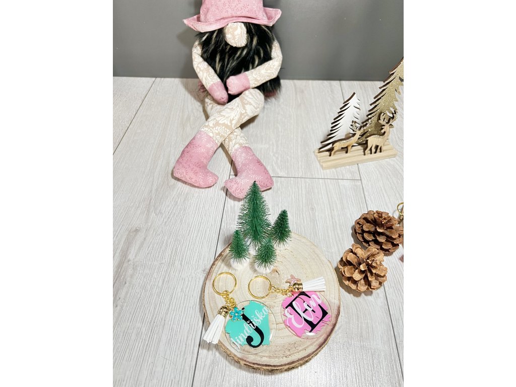 Akrylátová klíčenka se jménem a počátečním písmenem jména.